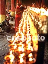 圖:觀光的游客向佛像敬獻(xiàn)酥油燈 2001年5月9日 19:20 ![]() 在今夏的旅游旺季,一些到西藏寺廟觀光的游客按照藏族的習(xí)俗向佛像敬獻(xiàn)酥油燈,祈求平安。中新社記者 宋吉河 攝