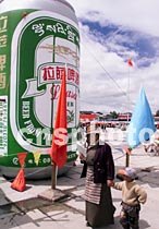 圖:“拉薩啤酒”以巨型酒瓶作廣告推銷新產(chǎn)品 2001年5月9日 20:23 ![]() 正在拉薩市布達拉宮廣場上舉辦的西藏名優(yōu)新特別產(chǎn)品展示會上,西藏目前已上市的六家公司之一的“拉薩啤酒”,以巨型酒瓶作廣告推銷新產(chǎn)品。中新社圖 趙偉 攝