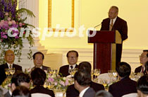 香港特區(qū)行政長(zhǎng)官董建華五月九日在午宴上致辭。中新社傳真 任海霞 攝