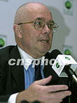 香港投資推廣署署長盧維思,5月9日在香港舉行的《財富》論壇上就中國入世后的商機回答記者問。中新社傳真 任晨鳴 攝