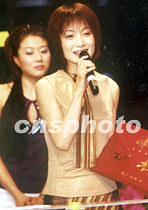 中國蒙古族女歌手斯琴格日樂,日前在《中國流行歌曲榜》年度頒獎晚會上獲得最佳新人獎。圖為她在領(lǐng)獎臺上向歌迷致意。中新社記者 錢興強 攝