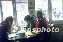 拉薩的一位喇嘛在八廓街的瑪吉阿米藏式酒吧向一位德國女孩學(xué)習(xí)英語,他則教德國女孩藏語。位于雪域高原的拉薩如今是一個(gè)國際化的城市,諸多的文化在這里交融。中新社記者 滿會(huì)喬 攝