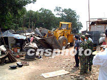在珠海的一些部隊(duì)營(yíng)區(qū)附近有不少“三無”人員搭建了違章建筑,種菜養(yǎng)豬,嚴(yán)重地污染了周邊的環(huán)境。珠海市有關(guān)部門二十四日采取聯(lián)合行動(dòng),拆除了唐家、炮臺(tái)山、駐澳部隊(duì)珠海港周邊的違章建筑,并將在這些地方進(jìn)行綠化。中新社圖 冒韙、石頭 攝