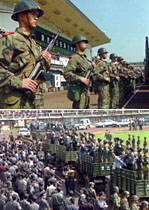 四川南充警方五月二十九日召開公捕大會(huì),將五月在高坪區(qū)、順慶區(qū)進(jìn)行三起重大搶劫、殺人、強(qiáng)奸犯罪的犯罪嫌疑人劉天兵、劉天龍、廖雄、趙強(qiáng)四人公開逮捕。