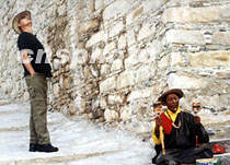 位于拉薩市郊的哲蚌寺迎來眾多的游客,一位外國游客和一位轉(zhuǎn)經(jīng)的藏民各自沉浸在自己關(guān)注的世界中。中新社記者 滿會喬 攝