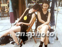 圖:T型臺(tái)下的模特小姐 2001年07月03日 12:26 ![]() 日前在北京舉行的一次模特大賽上,兩名參賽模特在緊張的賽事之余,抓緊時(shí)間靠在一起休息片刻。中新社記者 錢(qián)興強(qiáng) 攝