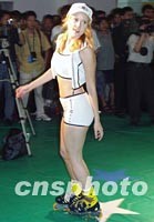 圖:外籍模體在育用品博覽會上 2001年07月07日 17:36 ![]() 正在北京舉行的2001中國國際體育用品博覽會上,各參展商在展臺上推出商品展示。圖為曼奴服飾集團(tuán)展位上身穿運(yùn)動服的外國模特。中新社記者 錢興強(qiáng) 攝
