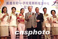 組圖:「鳳凰有約-李玟莫斯科見證申奧」記者會 2001年07月11日 00:27 ![]() 鳳凰衛(wèi)視10日在香港舉行「鳳凰有約-李玟莫斯科見證申奧」記者會。鳳凰衛(wèi)視常務(wù)副行玫總裁梁濃剛(中)、執(zhí)行副總裁楊家強(qiáng)(右三)與鳳凰衛(wèi)視眾主持人及歌星李玟在記者會上為期待北京申奧成功舉杯。中新社圖 鄧慶樂 攝 ![]() 鳳凰衛(wèi)視10日在香港舉行「鳳凰有約-李玟莫斯科見證申奧」記者會。特邀歌星李玟、影星周星馳于投票當(dāng)日(7月13日)親赴莫斯科,見證歷史性的一刻,李玟在記者會上介紹北京申奧標(biāo)志。中新社圖 鄧慶樂 攝