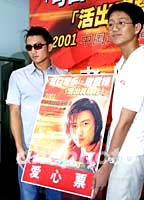 多圖:謝霆鋒巡回演唱風(fēng)下周刮到上海 2001年07月20日 15:47 ![]() 香港歌手謝霆鋒七月十九日在上海為其演唱會(huì)做前期推廣。“可口可樂(lè)謝霆鋒活出真精彩2001中國(guó)巡回演唱會(huì)”將于七月二十八日在可容納八萬(wàn)人的上海體育場(chǎng)舉行。謝霆鋒希望屆時(shí)更多的歌迷能了解他、接近他。中新社記者 潘索菲 攝 ![]() 新天王謝霆鋒十九日在上海向上海慈善基金會(huì)慈善助學(xué)的受助學(xué)生代表贈(zèng)送本月二十八日在此間舉行的“可口可樂(lè)謝霆鋒活出真精彩演唱會(huì)”的門票。中新社記者 潘索菲 攝