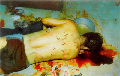 圖:練“法輪功”害人害己 2001年07月26日 20:15 ![]() 家住河北承德市桃李街的李亭受“法輪功”的欺騙,認為自己的父母是“惡魔”,他自己是“佛”!胺稹币选皭耗А背,遂用尖刀將父母殺死。圖為被害者李亭之父。新華社發(fā) 馬健民,男,54歲,華北油田退休職工。其家人稱,馬已練習“法輪功”兩年左右,達到了癡迷的程度,時常出現(xiàn)精神恍惚和失常,堅持認為自己的腹部有個“法輪”。1998年9月4日馬健民在家中用剪刀剖腹尋找,因救治不及時死亡。這是馬健民自殺后的慘景。新華社發(fā) |