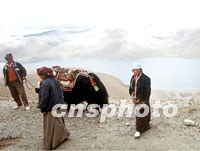 組圖:八月的西藏 2001年08月14日 16:50 ![]() 八月是西藏旅游的黃金季節(jié),藏民牽著牦牛在美麗的羊卓雍湖邊迎候游人,他們以為游客提供照相服務而增加自己的收入。中新社記者 滿會喬 攝 ![]() 八月的西藏拉薩,前往大昭寺朝拜釋迦牟尼佛像的藏民絡繹不絕。相傳這里供奉的釋迦牟尼佛像為唐朝初年文成公主帶入西藏。中新社記者 滿會喬 攝