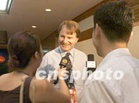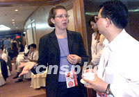 ![]() APEC2001年第三次高官會相關會議八月二十一日繼續(xù)在遼寧大連舉行,與會代表在會場外交流意見。中新社記者 滿會喬 攝 ![]() APEC2001年第三次高官會相關會議八月二十一日繼續(xù)在遼寧大連舉行,澳大利亞貿(mào)易官員白儒石接受記者采訪。中新社記者 滿會喬 攝