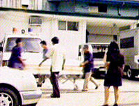 圖:運送中國人質(zhì)尸體的車隊抵達馬尼拉