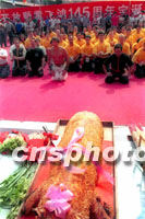 中新社佛山八月二十七日電(記者辛述之)今天是中國武林奇人黃飛鴻一百四十五周年誕辰,來自美國東、西部海外黃飛鴻門人尋根團(tuán)一行近百人,上午來到廣東佛山黃飛鴻紀(jì)念館,舉行拜師盛會并進(jìn)行武術(shù)表演。 晚清時期一代武術(shù)宗師黃飛鴻,一八五六年八月二十七日誕生于佛山。黃飛鴻武藝超凡,其富有傳奇色彩的故事,曾被拍成百余部電影在海外廣為流傳,其英名不但在國人心里扎根,而且還受到許多外國人的仰慕。 黃飛鴻門下弟子眾多,遍布粵港澳、東南亞乃至美加、歐洲等地。在人們心中,他已成為一個行俠仗義、扶危濟(jì)困,具有中華傳統(tǒng)美德的藝術(shù)形象而家喻戶曉。 今天,適逢座落于佛山祖廟的黃飛鴻紀(jì)念館全面開放,粵港澳武術(shù)界有關(guān)人員結(jié)伴前來,參加紀(jì)念盛會。上午九時,參加過國慶五十周年慶典的二十頭醒獅起舞迎賓,黃飛鴻的傳人、著名武術(shù)家趙志凌、余志偉等為黃飛鴻紀(jì)念館醒獅點(diǎn)睛,并帶領(lǐng)來自美國東、西部的近百名黃飛鴻門人,按照傳統(tǒng)武林習(xí)俗拜祭祖師黃飛鴻。 隨后,進(jìn)行了大型群鼓表演、舞龍表演和舞獅表演。余志偉、趙志凌及其洋弟子相繼表演了精彩的黃飛鴻拳術(shù),其不凡的身手和高超的武藝,博得觀眾高聲喝彩和陣陣掌聲。 據(jù)了解,黃飛鴻紀(jì)念館今后將每年舉辦世界黃飛鴻門人大聯(lián)誼,還將舉辦國際洪拳大賽,黃飛鴻、霍元甲南北大俠國際武術(shù)邀請賽等活動。(完) |