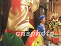 圖:“唐兵”把守西部論壇會(huì)場(chǎng)顯盛世威嚴(yán) 2001年09月06日 15:09 ![]() 西安兩名身扮唐代武士的門衛(wèi)在九月西部論壇分會(huì)場(chǎng)唐樂宮值勤,以渲染唐代氣氛顯示當(dāng)今魅力。中新社記者 宋吉河 攝 |