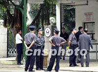 組圖:廣州警方加強(qiáng)美領(lǐng)事館的保安 2001年09月12日 10:48 ![]() 十二日清晨,美國(guó)駐廣州總領(lǐng)事館門前的保安工作明顯加強(qiáng),這是昨天美國(guó)受到恐怖襲擊之后,廣州警方采取的有力措施。中新社圖 梁永強(qiáng) 攝 ![]() 美國(guó)受到恐怖襲擊之后,十二日美國(guó)駐廣州總領(lǐng)事館如常辦公,門前排隊(duì)等候簽證的隊(duì)伍秩序井然。中新社圖 梁永強(qiáng) 攝