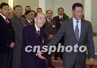 圖文:參加華商大會(huì)的澳門代表團(tuán)向何厚鏵辭行 2001年09月13日 09:09 ![]() 即將前往南京參加第六屆世界華商大會(huì)的澳門中華總商會(huì)代表團(tuán),十二日在名譽(yù)團(tuán)長馬萬祺率領(lǐng)下向行政長官何厚鏵辭行。中新社圖 宗金柱 攝