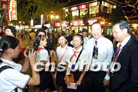 圖:少先隊員和華商在夫子廟合影 2001年09月17日 22:47 ![]() 第六屆華商大會代表十七日晚游覽南京著名風景區(qū)夫子廟,南京的少先隊員好奇地與代表們攀談并合影。中新社記者 李剛 攝 |