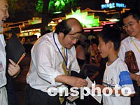 圖:貝聿愷為南京小市民簽名留念 2001年09月18日 14:10 ![]() 出席華商會(huì)的美國美中經(jīng)貿(mào)促進(jìn)會(huì)會(huì)長(zhǎng)貝聿愷十七日晚在南京著名景區(qū)秦淮河畔游覽時(shí),為熱情的南京小市民簽名。中新社記者 鄭萍萍 攝 |