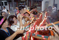 圖:華商進(jìn)香大明寺 2001年09月19日 11:38 ![]() 出席第六屆世界華商大會(huì)的千名華商九月下?lián)P州,進(jìn)香大明寺。中新社記者 史利 攝 |