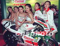 圖:靚女為車展做宣傳 2001年09月20日 10:43 ![]() 2001年亞洲公路摩托車錦標(biāo)賽日前在廣東珠海國(guó)際賽車場(chǎng)舉行,英國(guó)著名的嘉實(shí)多公司出巨資贊助在中國(guó)的此項(xiàng)賽事,并選用靚女為其做品牌宣傳。中新社記者 趙振清 攝 |