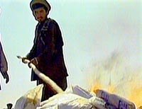 圖:美兵壓境阿富汗內戰(zhàn)更趨激烈 2001年09月27日 14:36 ![]() 在美國大兵壓境的背景下,阿富汗北方聯(lián)盟和塔利班之間的內戰(zhàn)日前更趨激烈。圖為北方聯(lián)盟士兵在焚燒從塔利班控制地區(qū)內搜獲的海洛因,海洛因據稱是拉登恐怖組織重要的資金來源。 |