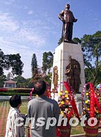 圖:瞻仰偉人孫中山先生銅像 2001年10月11日 18:56 ![]() 廣東各地紛紛舉行辛亥革命九十周年紀(jì)念活動,在韶關(guān)市中山公園內(nèi)孫中山先生銅像前,擺滿各界人士敬獻(xiàn)的花籃,一對老年夫婦遠(yuǎn)道而來瞻仰歷史偉人孫中山先生銅像。七十多年前,孫中山先生曾兩次親臨韶關(guān),在中山公園所在地督師北伐。中新社圖 馮昶 攝 |