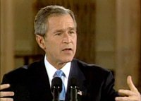 布什召開發(fā)布會(huì) 稱徹底根除拉登恐怖組織需兩年 2001年10月12日 10:10 ![]() 當(dāng)?shù)貢r(shí)間十月十一日晚,美國(guó)總統(tǒng)布什在白宮召開新聞發(fā)布會(huì)。這是一九九五年以來(lái),美國(guó)總統(tǒng)首次在黃金時(shí)段召開新聞發(fā)布會(huì)。