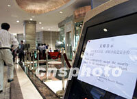 圖:APEC前夕上海重要飯店實(shí)行安檢 2001年10月13日 14:52 ![]() 亞太經(jīng)合組織高峰會(huì)開幕在即,上海一些參與會(huì)議接待的重要飯店開始實(shí)行安全檢查,以確保安全。中新社記者 毛建軍 攝 |