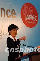圖:章啟月就APEC會(huì)議總體安排問題答記者問 2001年10月14日 12:16 ![]() 2001年APEC會(huì)議中國籌委會(huì)秘書處發(fā)言人章啟月,十四日在新聞中心就2001年APEC會(huì)議總體安排問題舉行新聞發(fā)布會(huì),回答中外記者提問。中新社記者 王瑤 攝 |