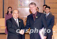 圖:石廣生會(huì)見新西蘭貿(mào)易談判部長 2001年10月16日 16:36 ![]() 中國對外經(jīng)濟(jì)貿(mào)易合作部長石廣生(左)十六日在上海國際會(huì)議中心會(huì)見前來參加亞太經(jīng)合組織(APEC)會(huì)議的新西蘭貿(mào)易談判部長吉姆·薩頓。中新社記者 毛建軍 攝 |