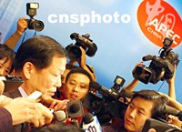 圖文:李榮融說(shuō)"9·11"對(duì)中國(guó)經(jīng)濟(jì)長(zhǎng)期影響大于近期 2001年10月17日 17:51 ![]() 中外記者十月十七日在上海圍住中國(guó)國(guó)家經(jīng)貿(mào)委主任李榮融,APEC國(guó)際新聞中心邀請(qǐng)他介紹中國(guó)經(jīng)濟(jì)與國(guó)企改革以及新近的美國(guó)考察之行,引起媒體的關(guān)注。中新社記者 賈國(guó)榮 攝