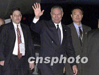 圖:美國國務卿鮑威爾抵達上海 2001年10月18日 10:14 ![]() 10月17日,美國國務卿科林·盧瑟·鮑威爾乘機抵達上海浦東國際機場。中新社圖 |