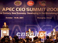 組圖:2001年APEC CEO峰會(huì)在上海開幕 2001年10月18日 15:05 ![]() 亞太經(jīng)合組織工商領(lǐng)導(dǎo)人峰會(huì)(APEC CEO)十八日下午在上海開幕,中國國務(wù)院副總理錢其琛出席開幕式并致辭。中新社記者 毛建軍 攝 ![]() 亞太經(jīng)合組織工商領(lǐng)導(dǎo)人峰會(huì)(APEC CEO)十八日下午在上海開幕,上海市長徐匡迪出席開幕式并致辭。中新社記者 毛建軍 攝