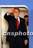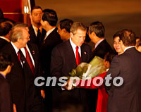 ![]() 10月18日,美國(guó)總統(tǒng)布什抵達(dá)上海浦東國(guó)際機(jī)場(chǎng),前來(lái)參加亞太經(jīng)合組織領(lǐng)導(dǎo)人非正式會(huì)議。這是美國(guó)總統(tǒng)布什下飛機(jī)后接受獻(xiàn)花。中新社圖 ![]() 美國(guó)總統(tǒng)布什乘坐空軍一號(hào)專機(jī)十八日晚飛抵上海浦東國(guó)際機(jī)場(chǎng),與向他獻(xiàn)花的上海小故娘合影留念。