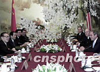 組圖:江澤民主席會(huì)見美國總統(tǒng)布什 2001年10月19日 13:40 ![]() 10月19日,國家主席江澤民在上海西郊賓館會(huì)見美國總統(tǒng)布什。中新社圖 ![]() 10月19日,中國國家主席江澤民在上海與美國總統(tǒng)布什舉行會(huì)談。中新社圖