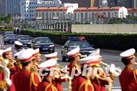 組圖:APEC樂手準備奏樂迎賓 2001年10月20日 16:01 ![]() 身著禮服的樂手二十日守侯在東方明珠的APEC標志牌下,等候執(zhí)行奏樂迎賓的任務。中新社圖 劉殊瑾 攝 ![]() 出席APEC第九次領導人非正式會議的各經(jīng)濟體首腦二十日下午來到上海國際會議中心參加盛會,圖為載著領導人的國賓車隊依次駛?cè)霑䦂鐾局小?中新社記者 潘索菲 攝