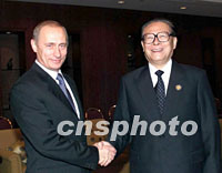 圖:江澤民主席會(huì)見(jiàn)俄總統(tǒng)普京 2001年10月20日 16:12 ![]() 10月20日,中國(guó)國(guó)家主席江澤民在上海會(huì)見(jiàn)前來(lái)參加2001年亞太經(jīng)合組織領(lǐng)導(dǎo)人非正式會(huì)議的俄羅斯總統(tǒng)普京。中新社圖 |