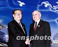 圖:江澤民迎接澳大利亞總理 2001年10月21日 11:14 ![]() 10月20日,中國(guó)國(guó)家主席江澤民在上海國(guó)際會(huì)議中心迎接澳大利亞總理霍華德。中新社圖 |