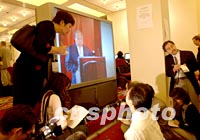 ![]() WTO多哈會議10日晚審議通過了中國入世,中國代表團團長石廣生、副團長龍永圖出席會議。中新社記者 錢興強 攝 ![]() 世界貿(mào)易組織(WTO)第四屆部長級會議10日晚審議通過了中國加入世界貿(mào)易組織。圖為會議新聞中心的記者們在觀看電視直播。中新社記者 錢興強 攝