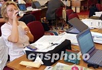圖:各國記者關(guān)注中國入世簽字儀式 2001年11月12日 11:18 ![]() 第四屆WTO部長會(huì)議十一晚舉行中國入世簽字儀式和通過臺(tái)灣加入世貿(mào)組織時(shí),各國記者在新聞中心緊張工作。圖為一名女記者邊用餐邊寫稿。中新社記者 錢興強(qiáng) 攝 |