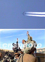 圖:北方聯(lián)盟將在一兩天內(nèi)對昆都士發(fā)起總攻 2001年11月24日 16:02 ![]() 二十三日,美軍多次出動B—52重型轟炸機對阿富汗昆都士東部和東北部塔利班陣地進行猛烈轟炸。北方聯(lián)盟二十三日攻占了昆都士東約二十公里的要塞汗阿巴德(鎮(zhèn))。北方聯(lián)盟將在一兩天內(nèi)對昆都士發(fā)起總攻。圖為北方聯(lián)戰(zhàn)士對美機轟炸塔利班陣地表示喜悅之情。中新社 |