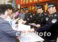 圖:北京警方向市民發(fā)放嚴(yán)打宣傳材料 2001年12月05日 15:19 ![]() 北京警方日前在街頭向市民發(fā)放嚴(yán)打宣傳材料,以取得百姓對(duì)嚴(yán)打整治斗爭(zhēng)的支持。中新社圖 黃然 攝 |