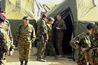 圖:150名國際維和士兵抵達喀布爾 2002年01月03日 16:33 ![]() 大約150名國際維和部隊士兵2日已抵達阿富汗首都喀布爾,其他部隊正源源不斷往這里進發(fā)。在這150人的先遣部隊中,125人屬于英國軍隊,其中有7名女兵;其他25人則分別來自德國、法國、意大利等歐洲國家。國際維和部隊的總部就設(shè)在喀布爾市區(qū)美國大使館附近。中新社圖 |