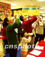 圖:搞促銷廣州商家舉行“吮”奶擂臺賽 2002年01月12日 19:17 ![]() 節(jié)假日是商家做“秀”搞促銷的黃金時段。周六,廣州中華廣場舉行了一場“瘋狂‘吮’奶擂臺爭霸賽”,吸引了不少自認(rèn)為飲量驚人的顧客前來參賽。圖為男女老幼同場較量。中新社圖 羅仰明 攝 |