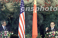中新社北京二月二十一日十三時(shí)十五分電 本社記者譚宏偉現(xiàn)場(chǎng)報(bào)道:今天下午,中國(guó)國(guó)家主席江澤民和美國(guó)總統(tǒng)布什在結(jié)束大約一小時(shí)四十分鐘的會(huì)談后來(lái)到人民大會(huì)堂中央大廳共同會(huì)見(jiàn)記者。 江澤民說(shuō),在今天的會(huì)談中,我與布什總統(tǒng)回顧了中美關(guān)系三十年的歷程,深入討論了雙邊關(guān)系和當(dāng)前國(guó)際形勢(shì),達(dá)成了許多重要共識(shí),取得了多方面的積極成果。 兩國(guó)元首將在預(yù)計(jì)三十分鐘的時(shí)間里,向早已等候在這里的三百多名中外記者介紹此次峰會(huì)的主要內(nèi)容并回答有關(guān)提問(wèn)。記者會(huì)現(xiàn)正在進(jìn)行當(dāng)中。