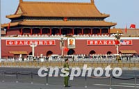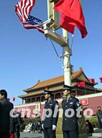 ![]() 美國總統(tǒng)布什二月二十一日來華訪問,兩國國旗同時(shí)在天安門前飄揚(yáng)。中新社圖 杜洋 攝