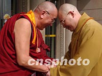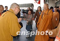 組圖:法門寺佛指舍利臺灣迎請團抵達西安 2002年02月21日 19:49 ![]() 由臺灣佛教法師、信眾組成的法門寺佛指舍利赴臺灣地區(qū)瞻禮(供奉)恭迎團,二十一日下午乘機抵達西安咸陽國際機場。圖為恭迎團在機場受到熱烈歡迎。中新社記者 錢興強 攝 ![]() 法門寺將舉行佛指舍利赴臺灣地區(qū)瞻禮(供奉)法會,來自大陸、港臺以及各地的佛教信眾匯聚西安。圖為中國著名法師圣輝(右)和中國藏學(xué)院副院長那倉活佛(左)親切見面。中新社記者 錢興強 攝