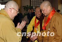 圖:兩岸佛教人士匯聚西安 2002年02月22日 09:30 ![]() 由臺灣佛教人士組成的法門寺佛指舍利赴臺灣地區(qū)瞻禮(供奉)恭迎團(tuán),日前乘專機(jī)抵達(dá)西安。圖為兩岸佛教人士相互施禮。中新社記者 錢興強(qiáng) 攝