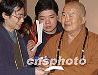 組圖:法門寺佛指舍利赴臺供奉新聞發(fā)布會 2002年02月22日 09:54 ![]() 法門寺佛指舍利赴臺供奉新聞發(fā)布會,日前在西安喜來登大酒店舉行,中國佛教協(xié)會等有關人士和臺灣佛教人士以及來自大陸、港臺的眾多記者參加了發(fā)布會。圖為臺灣惟覺法師與法門寺凈一方丈在發(fā)布會上。中新社記者 錢興強 攝 ![]() 法門寺佛指舍利赴臺供奉新聞發(fā)布會,日前在西安喜來登大酒店舉行,中國佛教協(xié)會等有關人士和臺灣佛教人士以及來自大陸、港臺的眾多記者參加了發(fā)布會。圖為臺灣星云法師為賓客簽書。中新社記者 錢興強 攝
